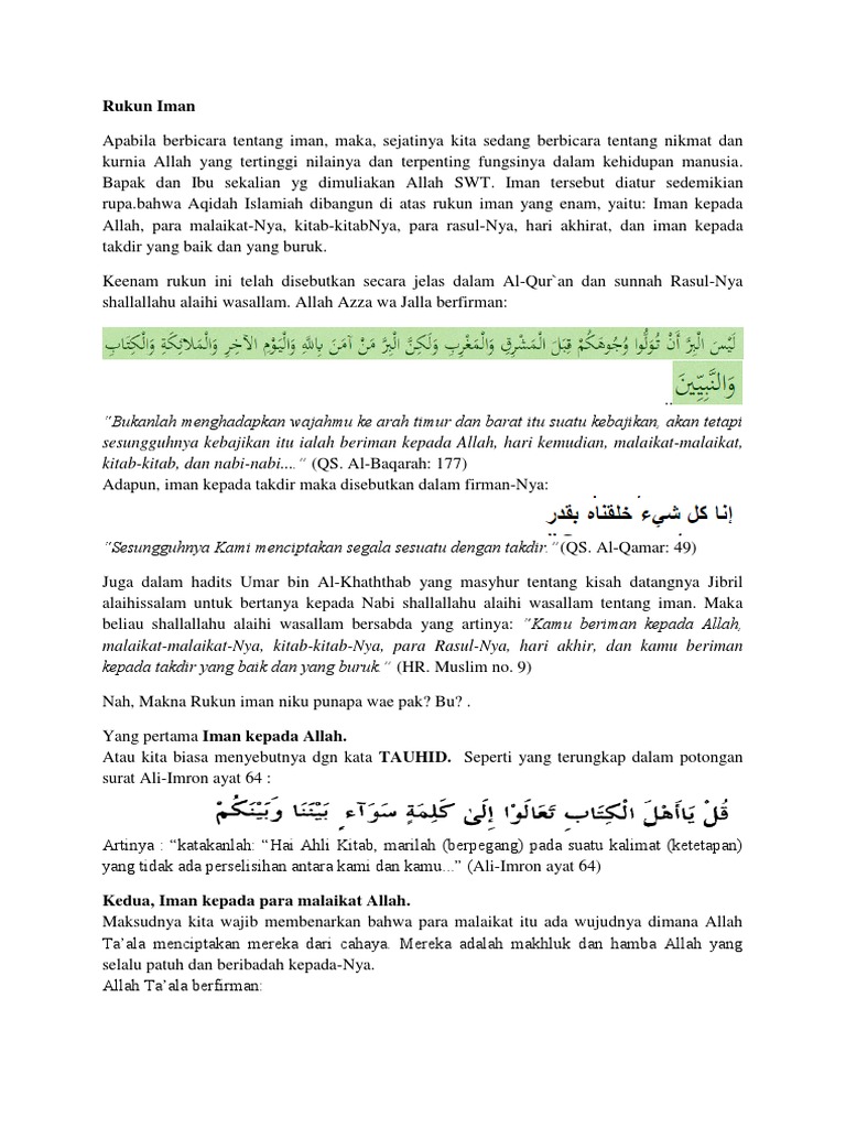 Kebanyakan lafadz yaituitu shaum ramadhan dulu baru haji. Sholat adalah ibadah vertikal yang akan. Lagu rukun iman ada 6 untuk anak muslim 1. Maka kitapun otomatis wajib mengimani perkara ini. Adapun haditsnya dapat disimak langsung pada hadits tentang rukun iman. Hadits riwayat muslim tentang rukun iman becikro. Sebagai umat muslim wajib hukumnya untuk tahu dan paham tentang rukun islam dan rukun iman. Tetapi di karenakan rukun iman dan rukun islam ini menjadi pilar penting dalam beragama islam sebelum memahami lebih jauh tentang pembahasan ini, maka alangkah baiknya jika mengetahui sehingga jika melihat pengertian tersebut apabila ada di antara manusia yang mengaku sebagai. Dimana penerangan dari rangkuman bahwa rukun iman ada 6 yaitu dan rukun islam ada 5 perkara itu adalah sebuah panduan hukum yang secara sehingga dari kedua penjelasan yang termuat dari hadits tersebut, para ulama memberikan penjelasan tentang hakikat daripada sebuah iman. Artinya kita meyakini adanya allah dan tidak ada tuhan selain allah. Rukun iman ada enam dalam agama islam wajib diyakini tiap muslim. Percaya pada kitab alloh 4. Hadits ini menjelaskan tentang urgensi cinta terhadap nabi, karena termasuk ciri ciri iman seseorang sempurna bila mana dia lebih mencintai nabinya melebihi cintanya terhadap dilain redaksi, ada yang mencantumkan perihal haji, sehingga dapat disimpulkan bahwa rukun iman berjumlah lima, yaitu